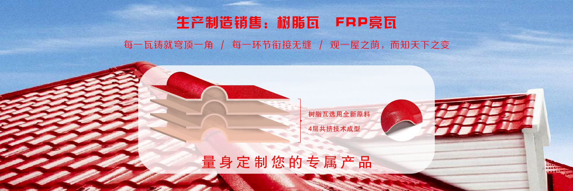 • 樹脂瓦、亮瓦 選材 > 生產 > 檢驗 > 生產制造環環相扣,每一環節嚴密監控,層層把關